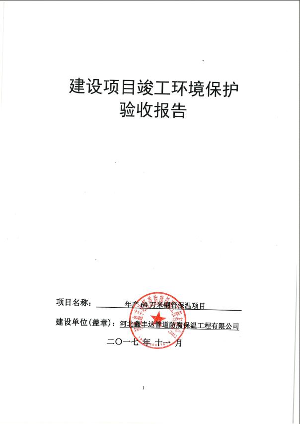 全-河北鑫豐達(dá)管道防腐保溫工程有限公司年產(chǎn)60萬米鋼管保溫項(xiàng)目驗(yàn)收報(bào)告12.4(試行)
