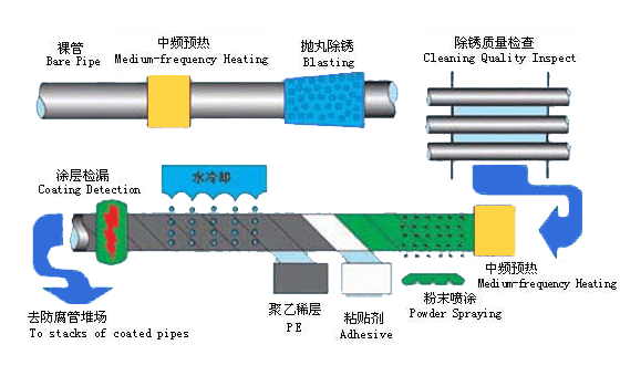 3PE防腐: 管道三層PE防腐結(jié)構(gòu):層環(huán)氧粉末(FBE>100um ),第二層膠粘劑(AD)170~250um,第三層聚乙烯(PE)2.5~3.7mm。三種材料融為一體,并與鋼管牢固結(jié)合形成優(yōu)良的防腐層。 管徑范圍Φ60~Φ1420 2PE防腐: 管道二層PE防腐結(jié)構(gòu),層膠粘劑 (AD),第二層聚乙烯(PE),二種材料融為一體,各層厚度同三層PE相同.